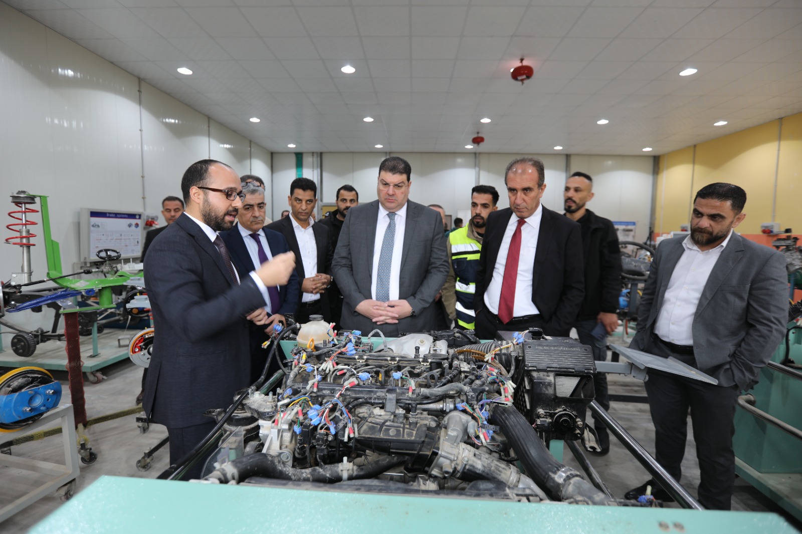 وفي ختام اللقاء، أجرى الوزير ووفد الوزارة زيارة وجولة اطلاعية في مختبرات هندسة السيارات في الجامعة، حيث اطلعوا على التجهيزات التقنية والبنية التحتية التدريبية والبحثية، واستمعوا إلى شرح حول آليات التدريب العملي للطلبة.